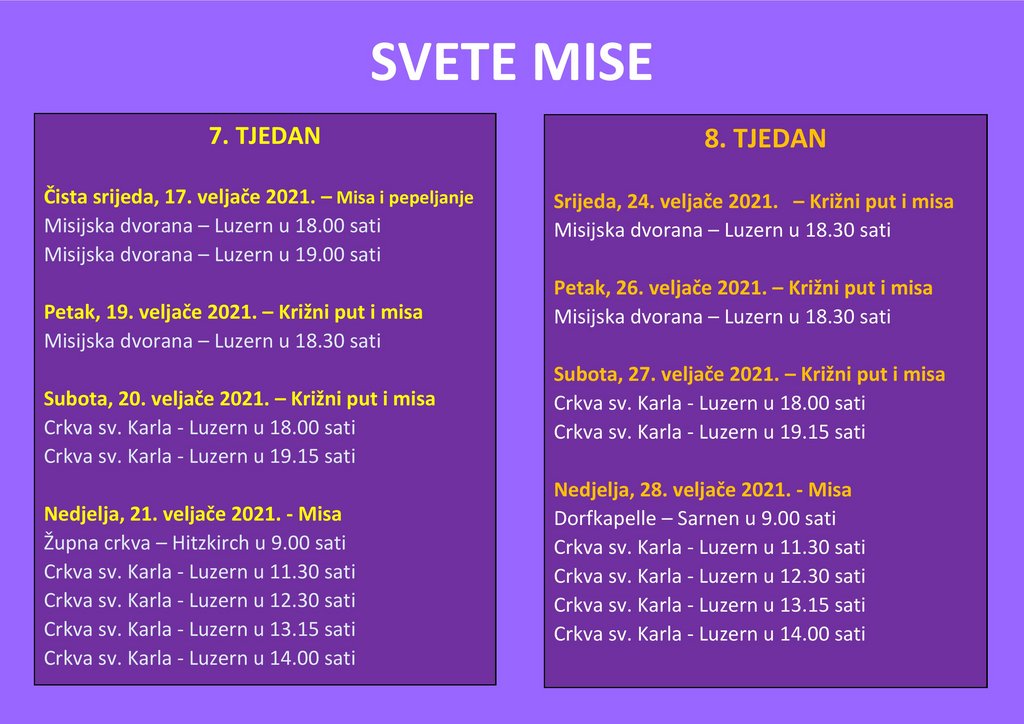 Da bismo u korizmi omogućili većem broju vjernika sudjelovanje na svetoj misi bar jednom u dva tjedna MIJENJAMO NAČIN PRIJAVLJIVANJA, a to znači da se možete prijaviti za dva tjedna unaprijed. Prvi tjedan moguće se prijaviti samo jednom. Ako u drugom tjednu ostane nepopunjenih mjesta možete se prijaviti ponovo. Na plakatima imate dodatne informacije i termine misnih slavlja.