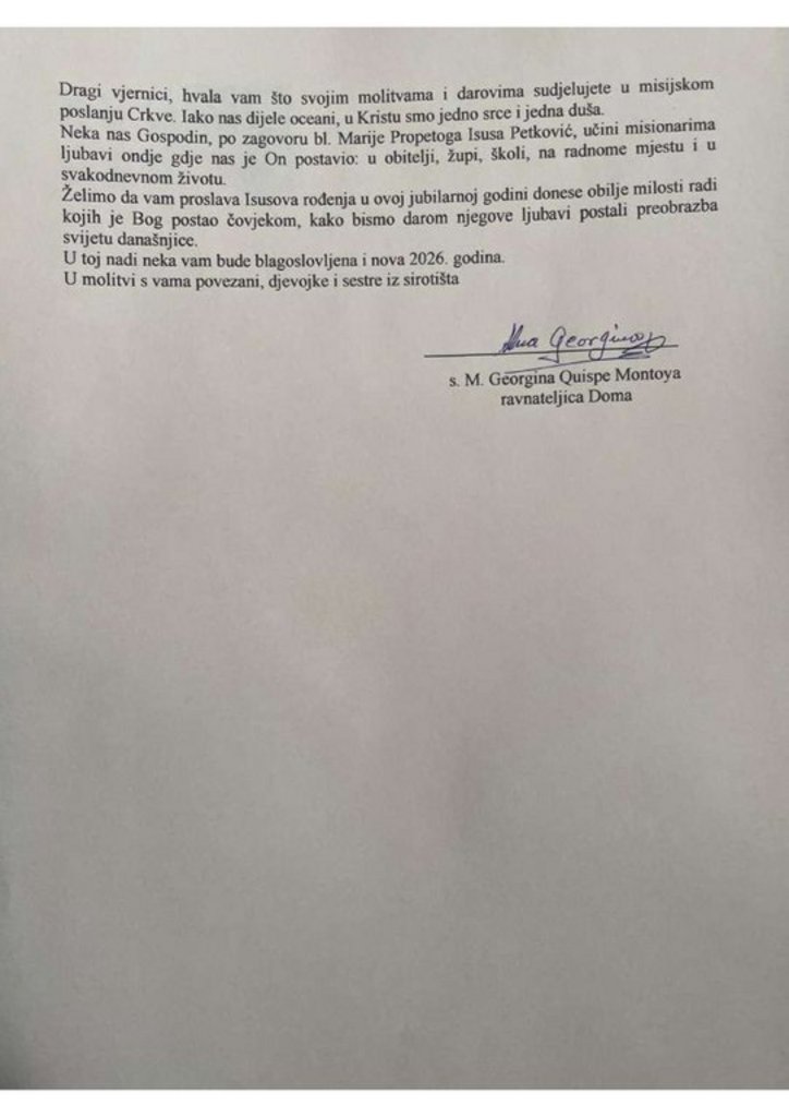 Isus veli: „Blaženije je davati nego primati!“ Čitav naš ljudski život odvija se u odnosu davanje i primanja. Tu vrijednost nastojimo prenijeti i na naše malene. To smo učinili i proteklog adventa u dobrotvornoj akciji „Djeca djeci“. Djeca su naime sa svojim mama prepremali božićne kolače, te izrađivali krunice i ukrasne narukvice. Vjernici su ih nagradili novčanim prilozima koje su poslali svojim vršnjacima u dom za siromašnu djecu u Peruu o kojima brine misionarka s. Julijana Beretić. Naša djeca su im darovala 3.330. Eura. I prilogu je zahvala i fotografije o spomenutoj akciji. Nakon Afrike i Južne Amerike ove korizme najavljujemo akciju za djecu bez roditeljske srbi u sirotištu „Majčino selo“ u Bijakovićima – Međugorju. Pozivamo stoga djecu i roditelje na radionicu u misijski centar u subotu, 28. ožujka u 10.00 sati kada ćemo izrađivati krunice i narukvice koje ćemo ponuditi dan kasnije u crkvi sv. Karla. Poduprite naše malene koji grade živi most pomoći.