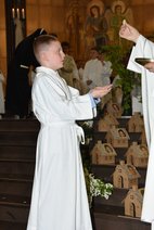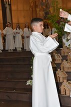 U nedjelju, 5. svibnja 2024. u crkvi sv. Karla u Luzernu svečano smo proslavili Prvu svetu pričest. Razmišljali smo o Isusovim riječima upućenim Zakeju: „Žurno siđi, danas mi je boraviti u tvojoj kući!“ U tom duhu i crkva je bila dekorirana. Slika Isusa i Zakeja, te kućice naših prvopričesnika s njihovim fotografijama, imenom i prezimenom i kućnim brojem. Vrata na kućicama su bila otvorena, a svijetlo upaljeno. Kao vjernička zajednica smo molili da u svome životu Isusu nikada ne zatvore vrata. Uz kućice naših prvopričesnika pred oltarom je bila crkva kao središte našega života, a oko nje zgrade koje su nam važne za našu svagdašnjicu: dječji vrtić i škola, vatrogasna postaja i bolnica, kino, policija, Emmen centar i zrada naše hrvatske katoličke misije. Ovo je poruka da ostajemo živjeti kao jedna vjernička zajednica okrenuti prema Isusu i da ćemo se truditi kako bi svi naši putovi vodili k njemu. Pored oltarom je bio i Zakejev dvorac. Prvopričesnici su u crkvu ušli noseći srca sa svojom slikom i molitvenim zazivom Isusu. Nakon što je ih je voditelj misije prozvao po imenu djecu s svoju spremnost izrazila riječima „Evo me!“ Uz prvopričesnike u misnom su slavlju aktivno sudjelovali i njihovi roditelji. Navjestili su Božju riječ i predmolili molitvu vjernika. Predajući prvopričesnicima svijeću obećali su i nadalje bdijeti nad duhovnom kućom svoje djece. U prinosu darova djeca su prinijela simbole prvopričesničke euharistije: kruh i hostije, vino i vodu, Bibliju i svijeću, srce, kasu i kućicu. Misu je glazbeno animirao misijski zbor mladih - Vis Natanael. Milost prvi put pristupiti k oltaru Gospodnjem imalo je 24 djece: Kiara Perković, Nikolina Jelančić, Lea Ivanković, Ena Kovač, Antea Ćurić, Lena Dujić, Anna di Cola, Mihaela Drmić, Gloria Nevistić, Ana Ćurić, Tamara Perković, Anna Kafadar, Laura Blažević, Olivia Tresch, Nikola Josipović, Mateo Berisha, Damian Jaković, Franjo Stojak, Filip Ivešić, Jeronim Hrvoje Vladović, Mateo Volić, Dario Grmača, Filip Garić i Luka Parić.