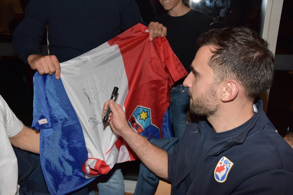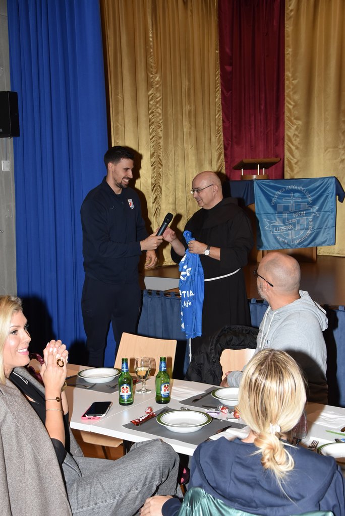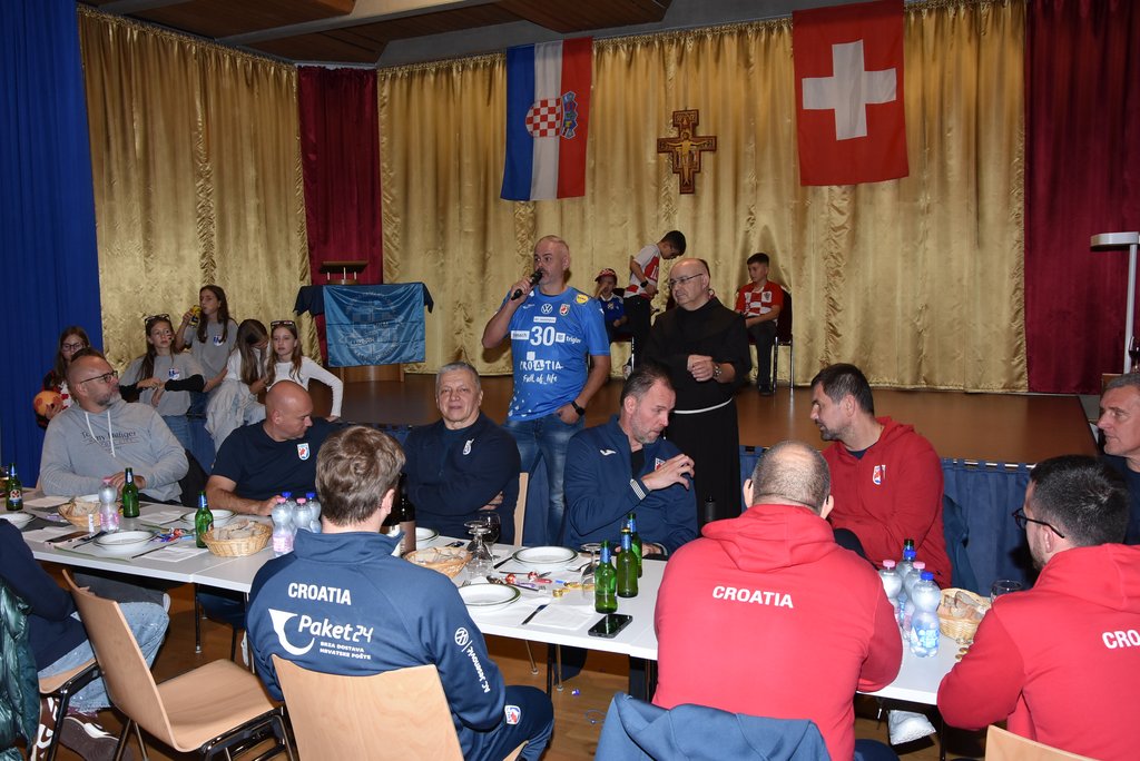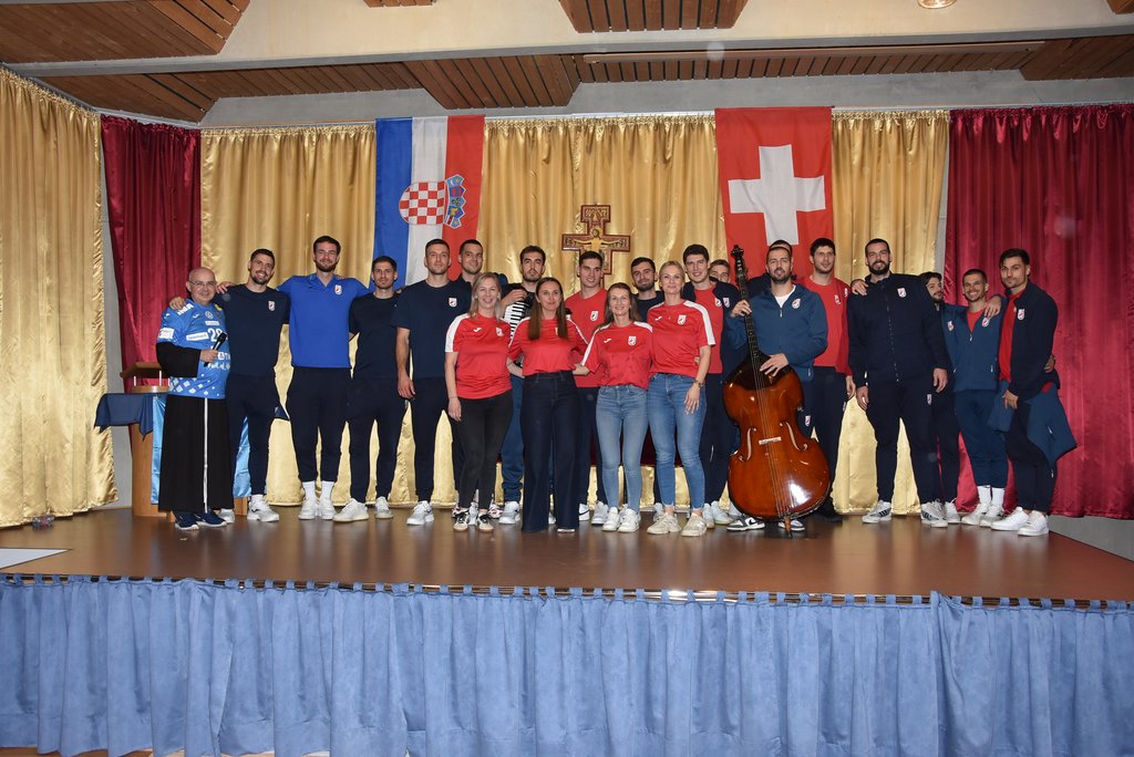 U sklopu priprema za predstojeće Europsko prvenstvo u Švicarskoj je boravila rukometna reprezentacija Hrvatske – aktualni viceprvak svijeta i s domaćinom odigrala dvije pripremne utakmice – u Bernu u četvrtak, 30. listopada, te u novo-otvorenoj Pilatus areni u Luzernu u subotu, 1. studnoga. Bio je ovo blagdan sporta za predstavnike našega naroda koji su se odazvali u jako velikom broju. Lijepo je bilo vidjeti more kockica – djece, mladih i odraslih – te čuti kako su arenom odjekivale hvatske domoljubne i navijačke pjesme. Nakon utakmice NK Croatia Luzern je za svoje članove i misijske suradnike u misijskim prostorijama organizila druženje s našim proslavljenim rukometašima i stručnim stožerom. U ime kluba dobrodošlicu im je poželio Krunoslav Radoš, te voditelj misije fra Branko. Zahvalio je kapetan Ivan Martinović. Nakon večere oni najmanji su iskoristili priliku za autograme i fotografiranje. Ugodno i veselo ozračje svojim su nastupom stvorili članovi TS Indigo. Druženje uz pjesmu potrajalo je do kasnih noćnih sati. I ovoga puta se očitovala velika povezanost naših profesionalnih sportaša i običnog puka. Ta povezanost je daleko vrijednija od samih sportskih rezultata, jer svejedno što su rukometaši svijetu aktualni viceprvaci, nama su prvaci.